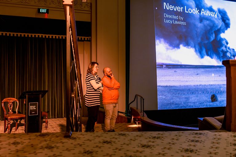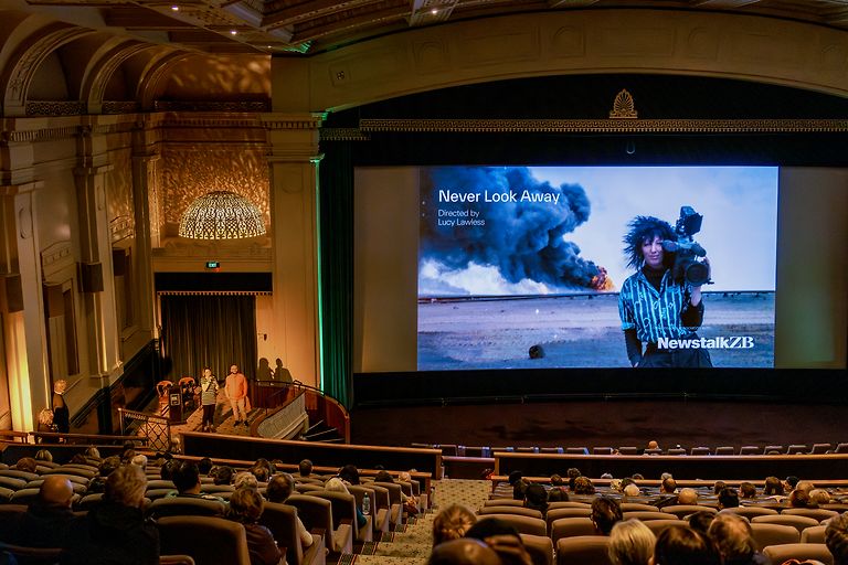 On Thursday 1 August, Never Look Away had its New Zealand Premiere at the Embassy Theatre. Directed by Kiwi icon Lucy Lawless, with her directorial debut, the film canvases the life of ground-breaking New Zealand-born camerawoman Margaret Moth. The premiere screening featured an introduction from Whānau Mārama New Zealand International Film Festival Artistic Director Paolo Bertolin, followed by a post-film Q&A with Lucy Lawless.